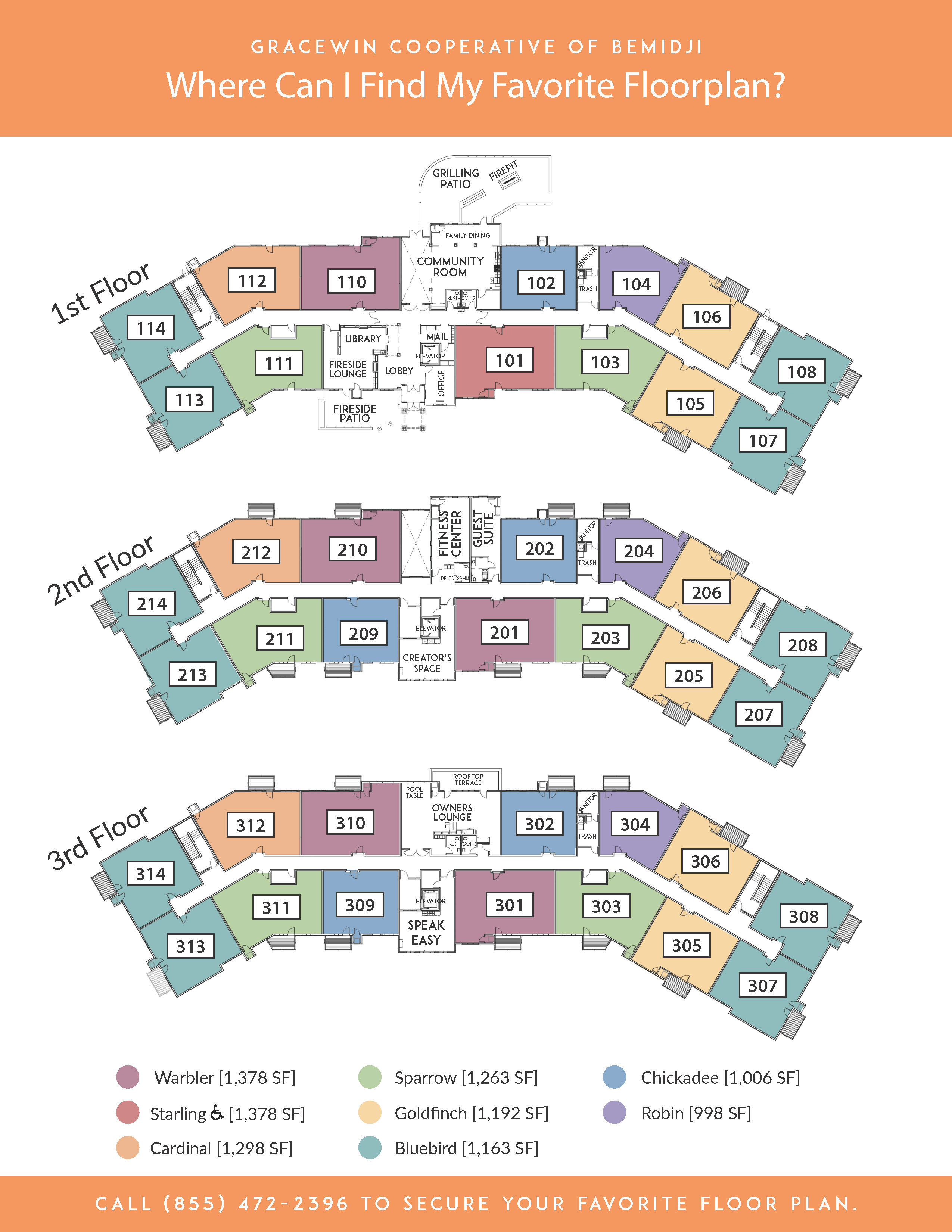 When the time comes for a member to vacate, the sale of the share is simplified. There are no real estate listings, inspections, or title work. Instead, the property manager manages the transfer - working with our waiting list, existing residents, and the like to find a new buyer for the share. Current members are guaranteed a 1-2% equity gain on their initial share investment. - There are multiple floor plans and unit finishing styles available.